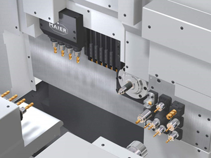 Zeit. Frontseitig lassen sich 4 angetriebene Werkzeuge stationieren, die