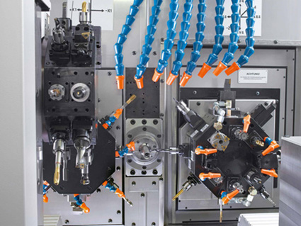 Das Geheimnis unseres großen Erfolgs: Wir bieten Serienmaschinen angepasst auf die Bedürfnisse des Kunden und sein spezifisches Fertigungsproblem. Dabei setzen wir auf ein cleveres, modulares Konzept, bei dem sich die unterschiedlichen Maschinentypen hauptsächlich durch die Art und Komplexität der Bearbeitungsmöglichkeiten unterscheiden. Unser Spektrum reicht aktuell von Maschinen zum Bearbeiten einfacher Werkstücke mit vier CNC-Achsen und maximal elf Werkzeugen bis hin zur High-End-Maschine der Serie F für das Komplettbearbeiten mittels 15 CNC-Achsen und bis zu 38 Werkzeugen.